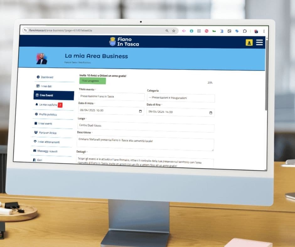 Entra in Fiano In Tasca e gestisci la tua attività e i tuoi eventi con semplicità.